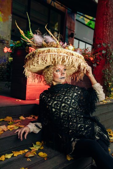 Почему же такой образ…? Почему скелет в женской одежде, украшенный цветами и красками? 🤔